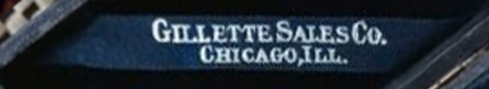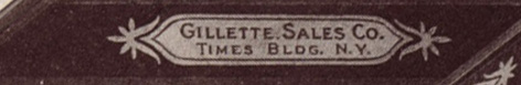 - "GILLETTE SALES CO. TIMES BLDG. N.Y." with ornamental design. Shown on catalog and adverts from 1905.