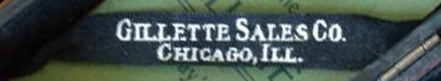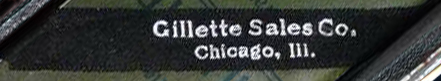 - "Gillette Sales Co. Chicago, Ill.", even in lowercase or capital letters, in different ornamental designs or simple, and where "Ill" means Illinois.