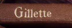 - "GILLETTE" with no ornamental design. Different paper colours, black, beige, violet or leather brown.