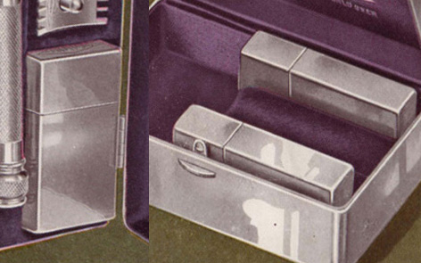 Leather covered or metal. We found several kind of cases, first in leather covered wood, and in 1909 Gillette introduces the first metal case.