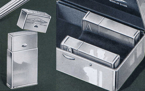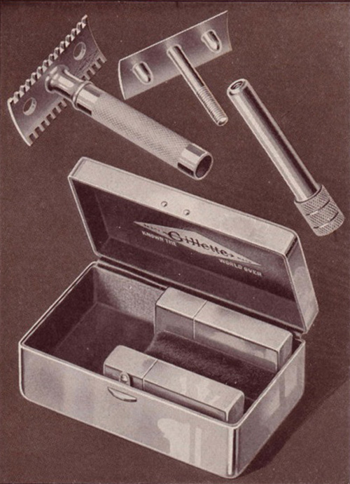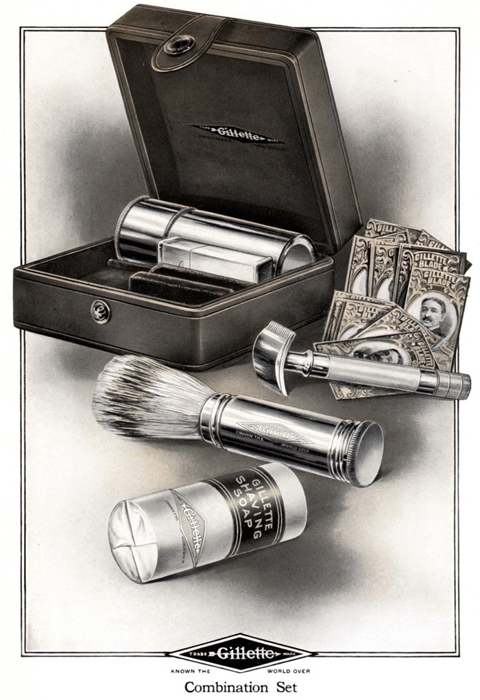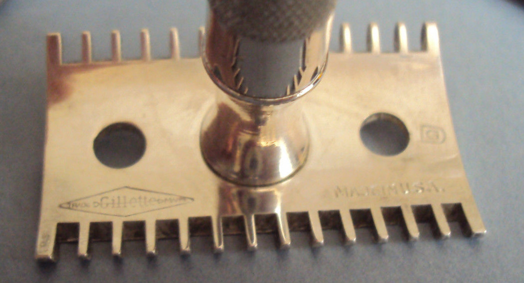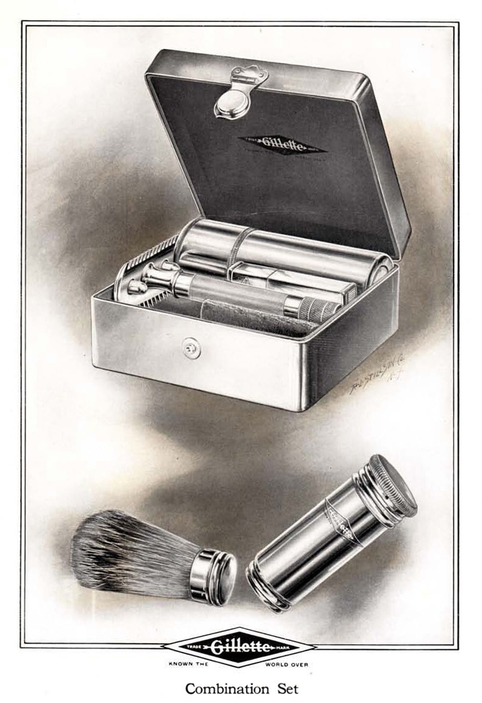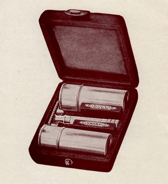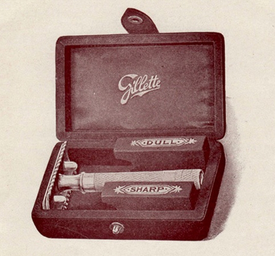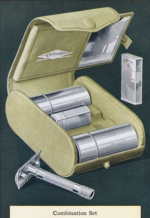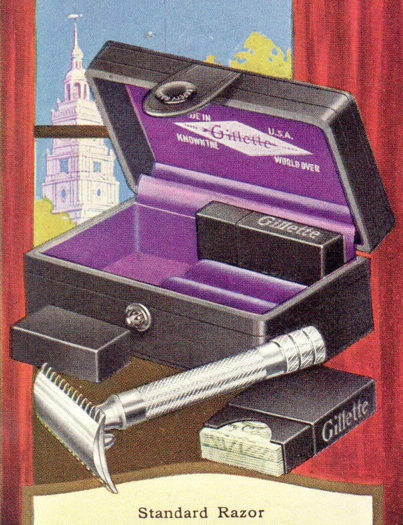 - "Gillette" diamond and arrow logo engraved in an ivory case (just early Aristocrats)