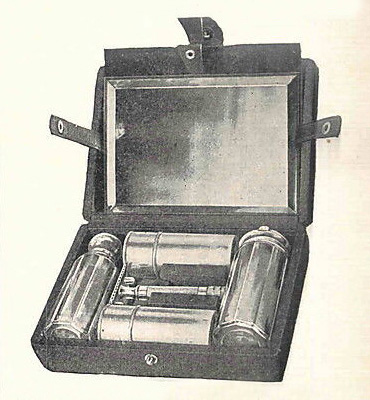 3. - Old type single ring case, with "not tapered" corners. The upper part inside the case is satin lined. The script or logo can change. 1907-1920