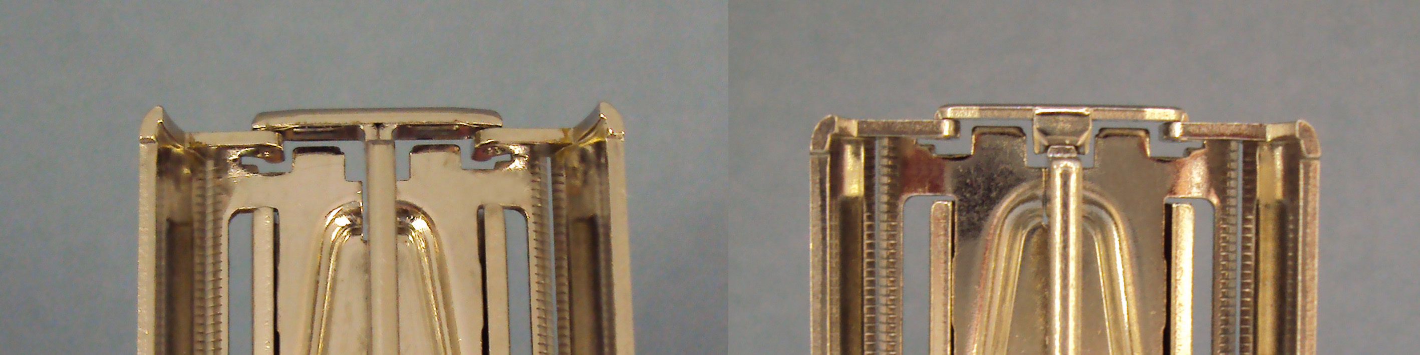 1.- End caps become one single piece. Until now the end caps were a continuity of the center bar, obtained bending the final part of the center bar and they were covered with a welded slim metal plate, that use to get lost. The end cap piece has a claw to fix itself to the center bar. It is set or crimped like jewels.