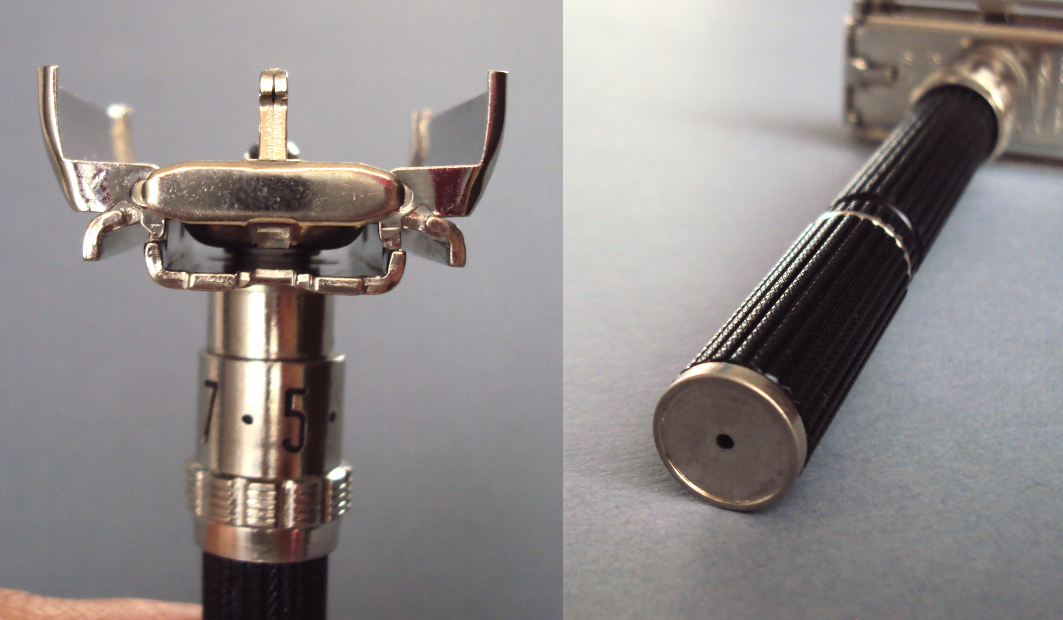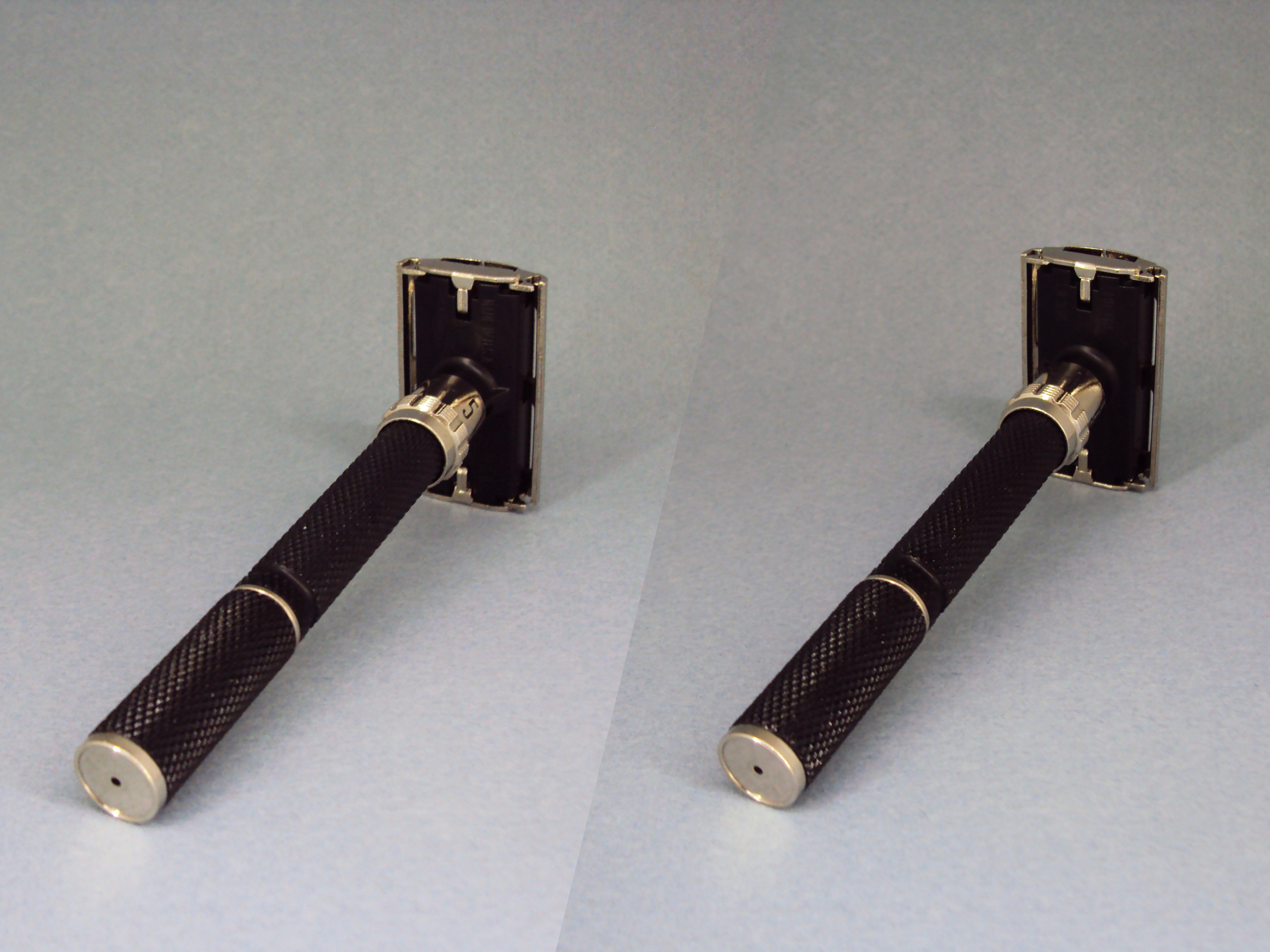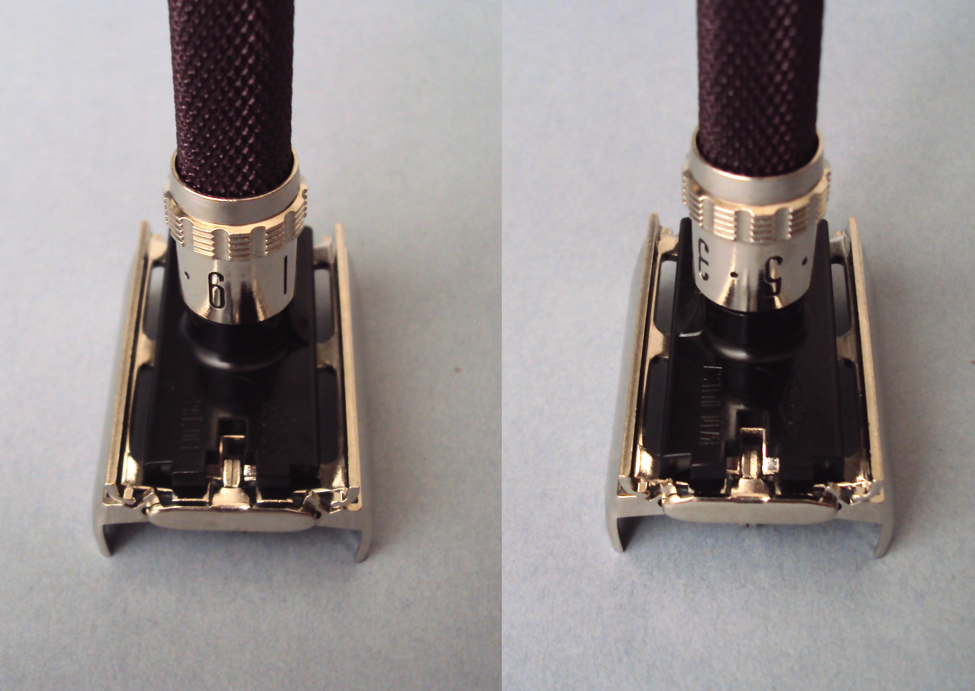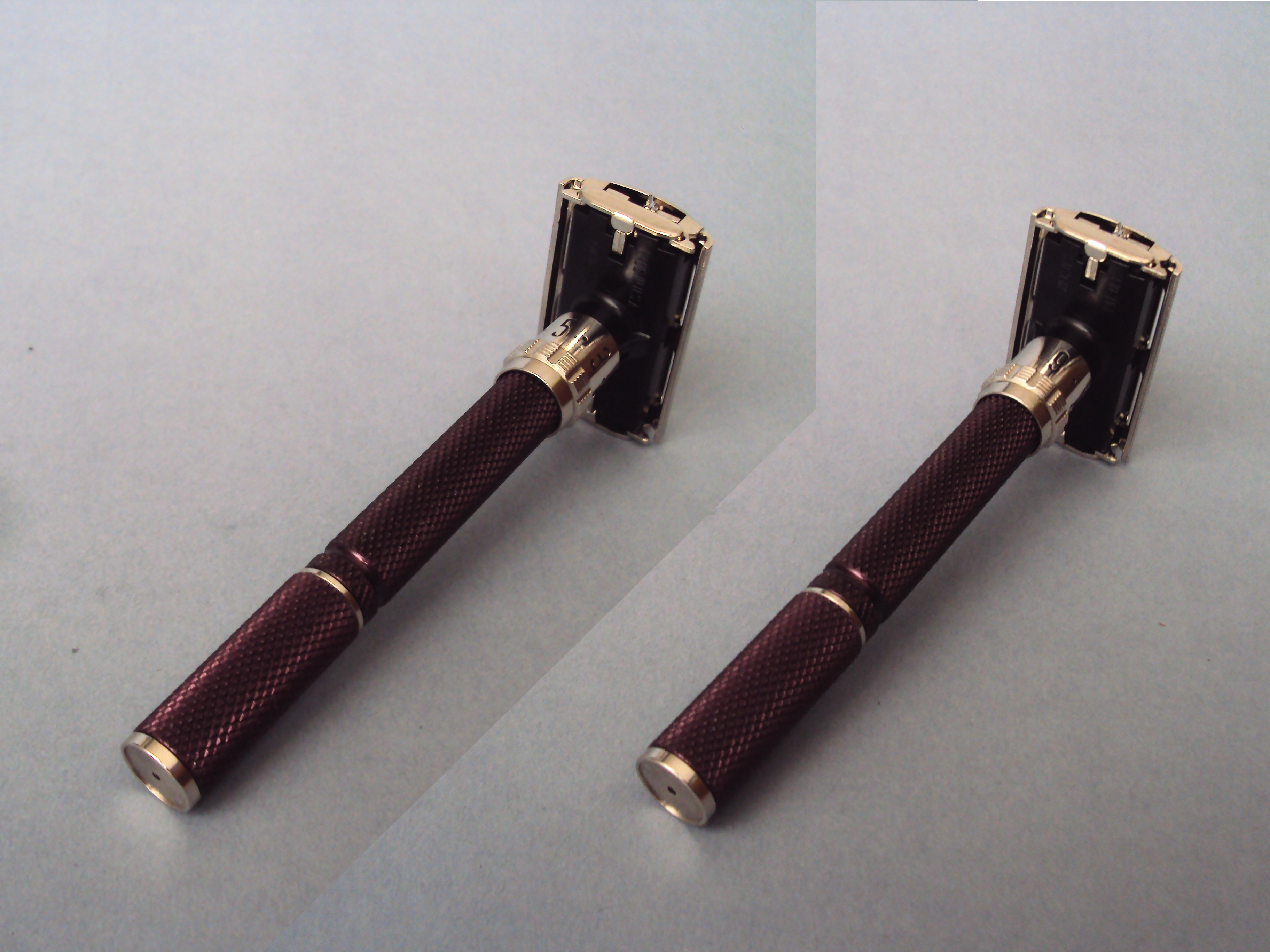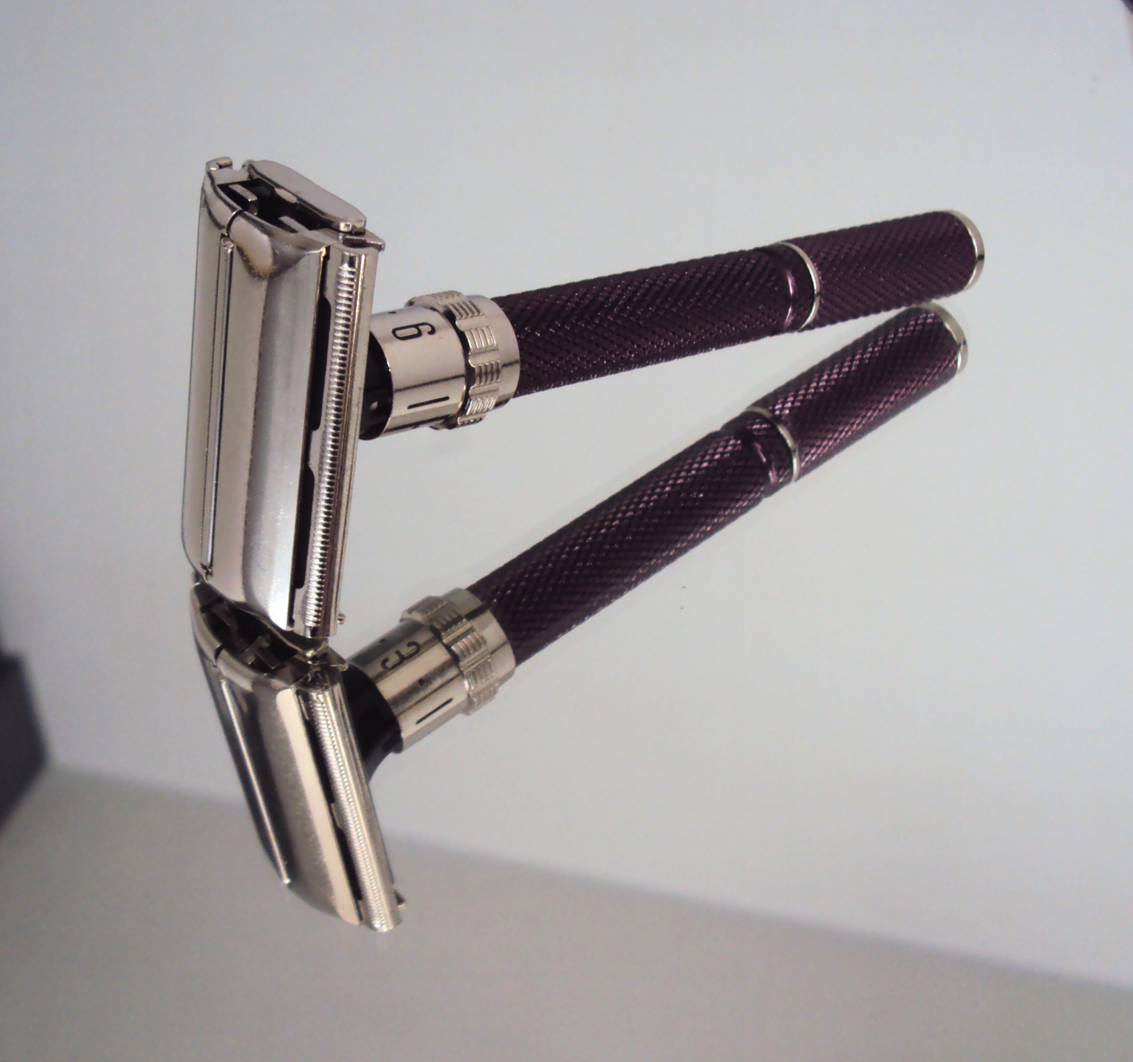 The change on this model is the diamond knurling on the handle, on violet color, and the plastic plate.