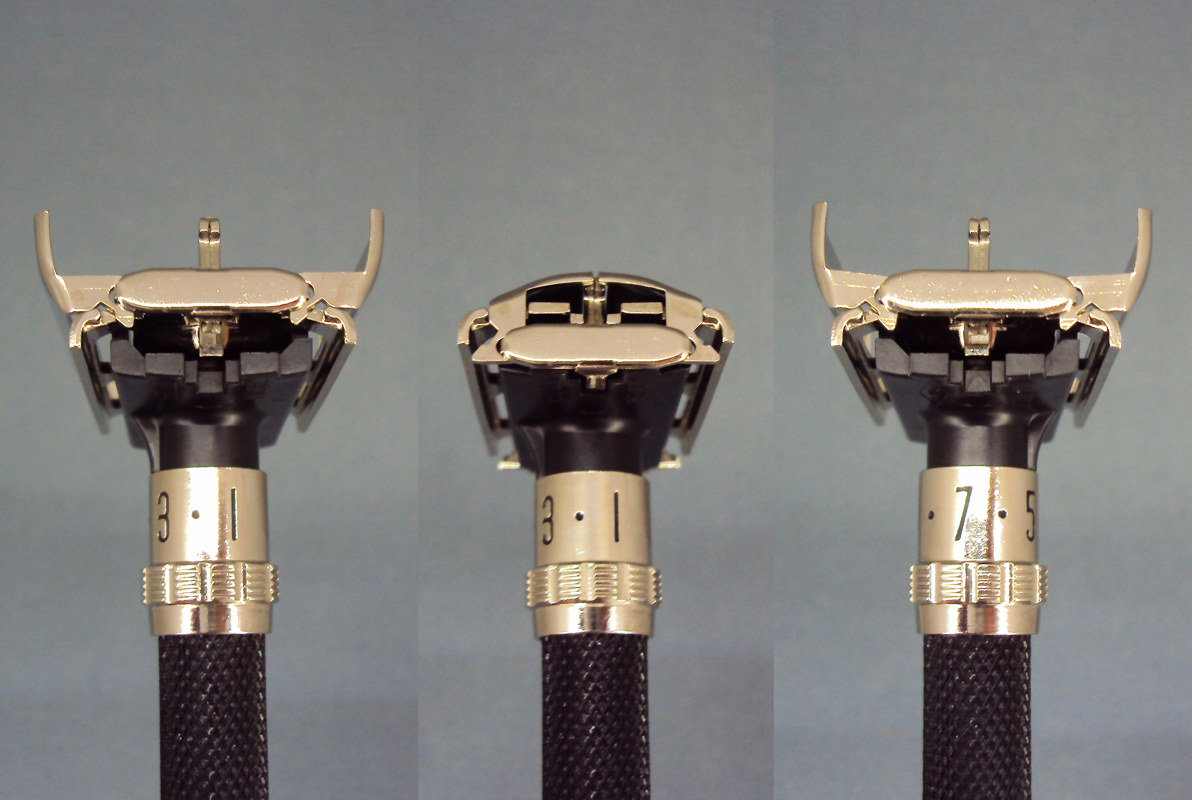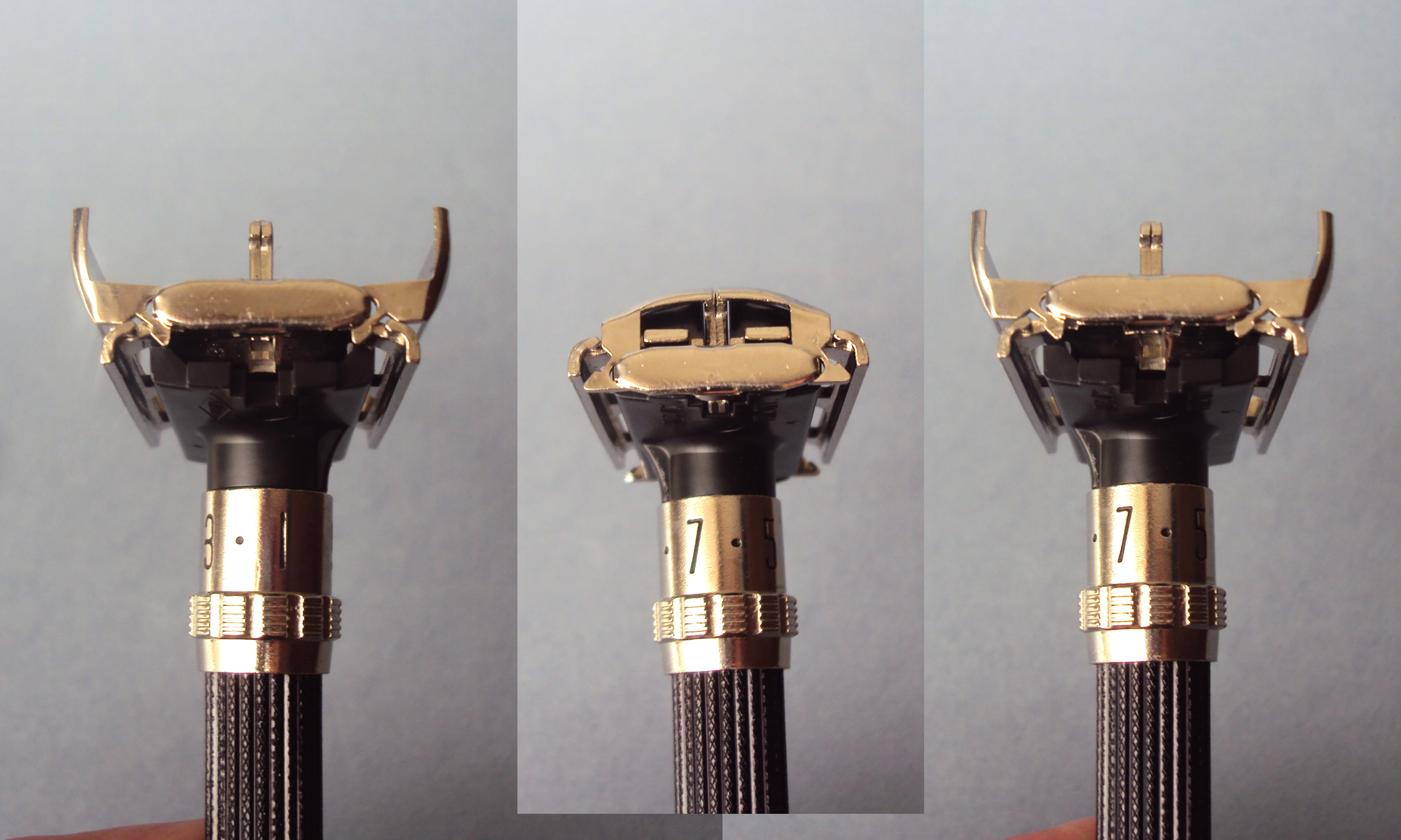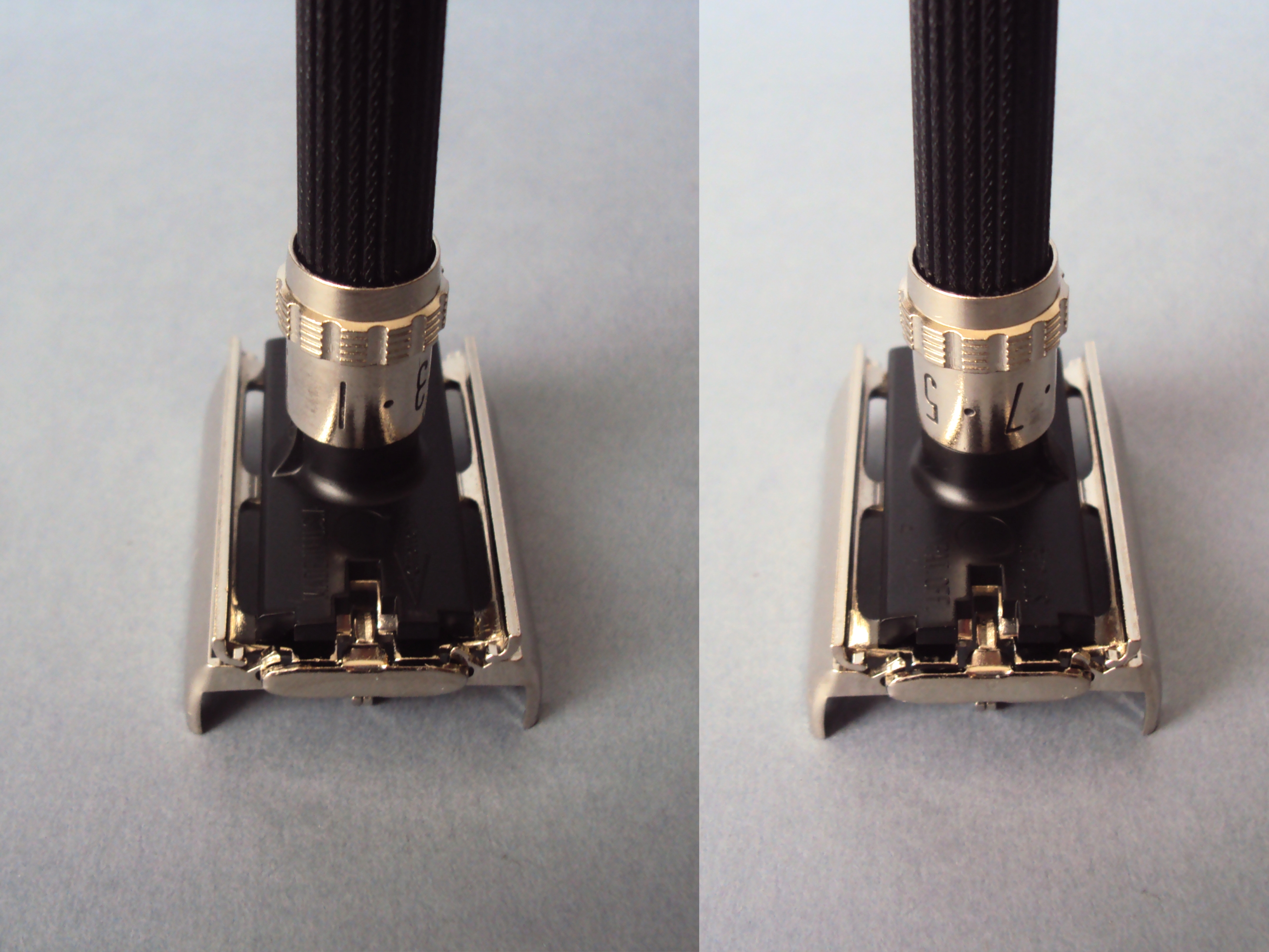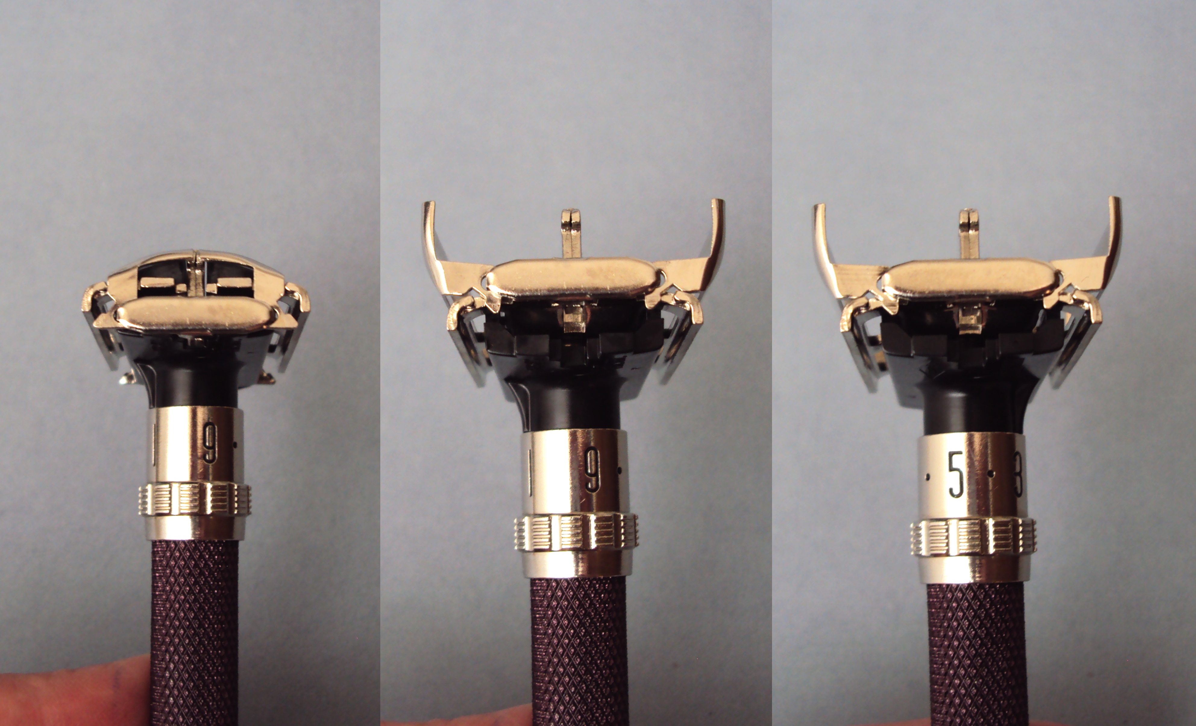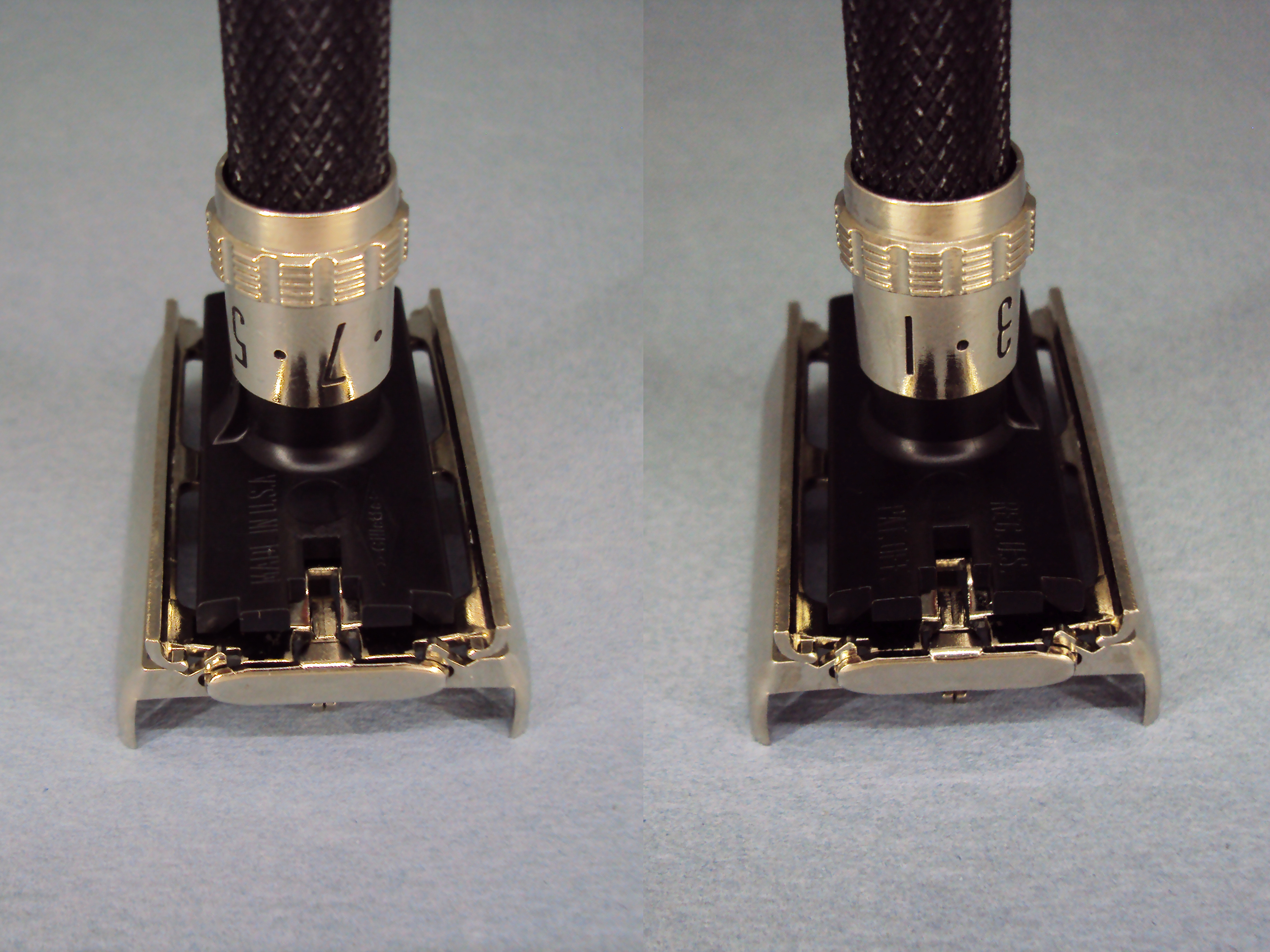 The change on this model is the diamond knurling on the handle, on violet color, and the plastic plate.